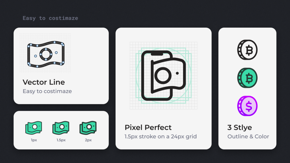 👉 Icon set included dollar, money, bitcoin, credit card, banknotes, coin and other.
